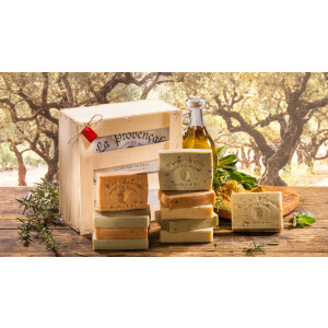unsere rein pflanzliche Seife wird nach dem Rezept der klassischen „Savon de Marseille“ mit einem Ölgehalt von mindestens 72 Prozent in der Masse hergestellt. Mit viel Liebe und Engagement haben wir wieder Kooperation mit erfahrenen „Maitre-Savonniers“ ein ausgestelltes Sortiment an Seifen mit herrlichen Düften entwickelt. Jedes Stück ist einzeln geprägt. Einige Sorten sind - für einen schönen Peeling-Efekt - dem Duft entsprechend mit natürlichen Zusätzen wie getrockneten Kräutern und Blütenstücken angereichert. Für jede Nase und jeden Geschmack finden Sie den richtigen Duft, alle mit hochwertigen Parfums, z.B. aus Grasse, produziert Unsere Seifen sind garantiert vollkommen frei von jedwedem tierischen Fett und oder Nebenprodukten und sind somit Vegan. Wir bieten eine sehr hochwertige Kollektion, die nach den neusten hygienischen Standards handwerklich hergestellt ist. Unsere Seifen präsentieren sich beliebten Retro-Look. Wir liefern Ihnen Seifen für höchste Ansprüche an Auftritt und Qualität. Für Kunden die eine möglichst naturnahe Seife